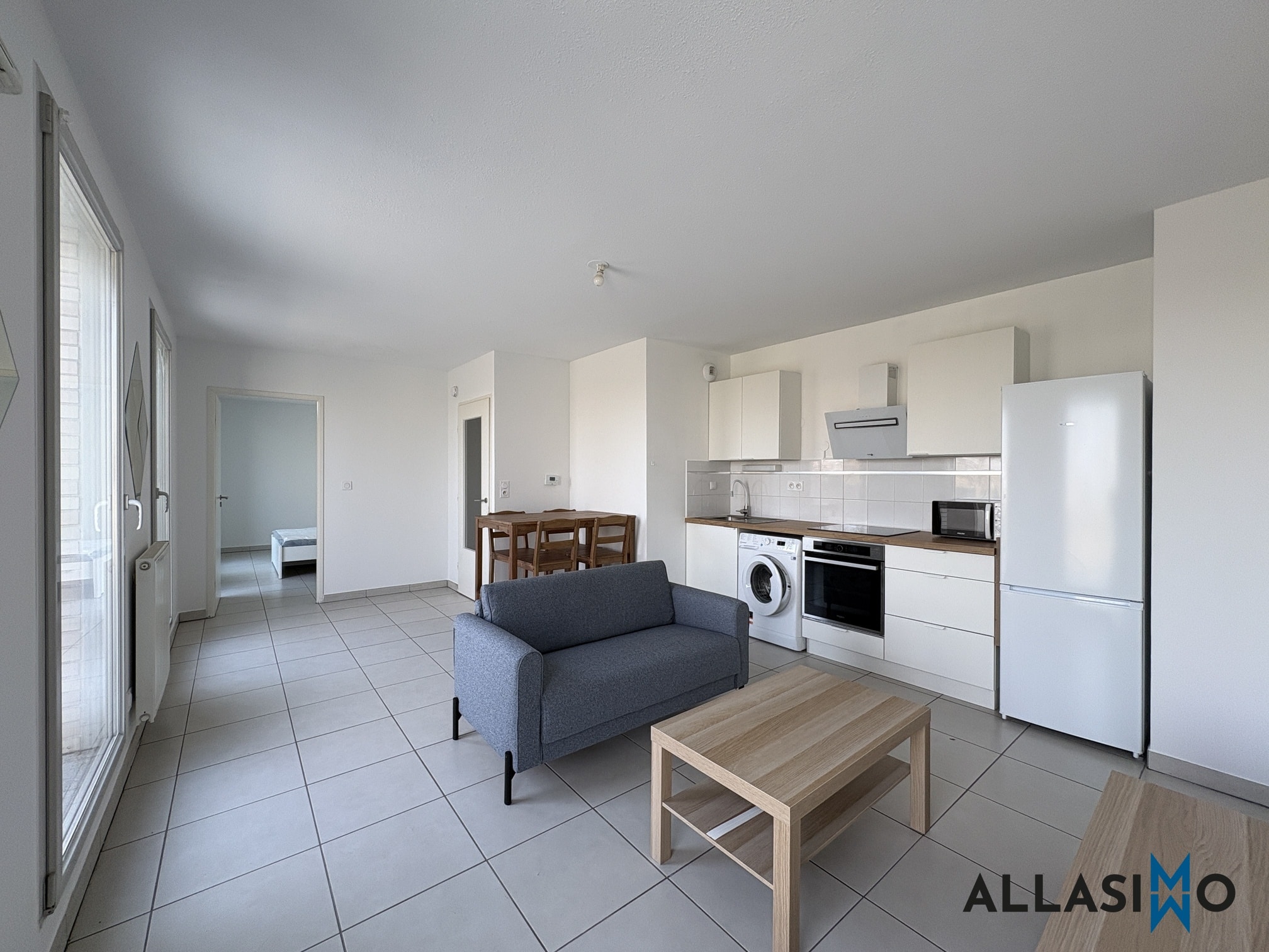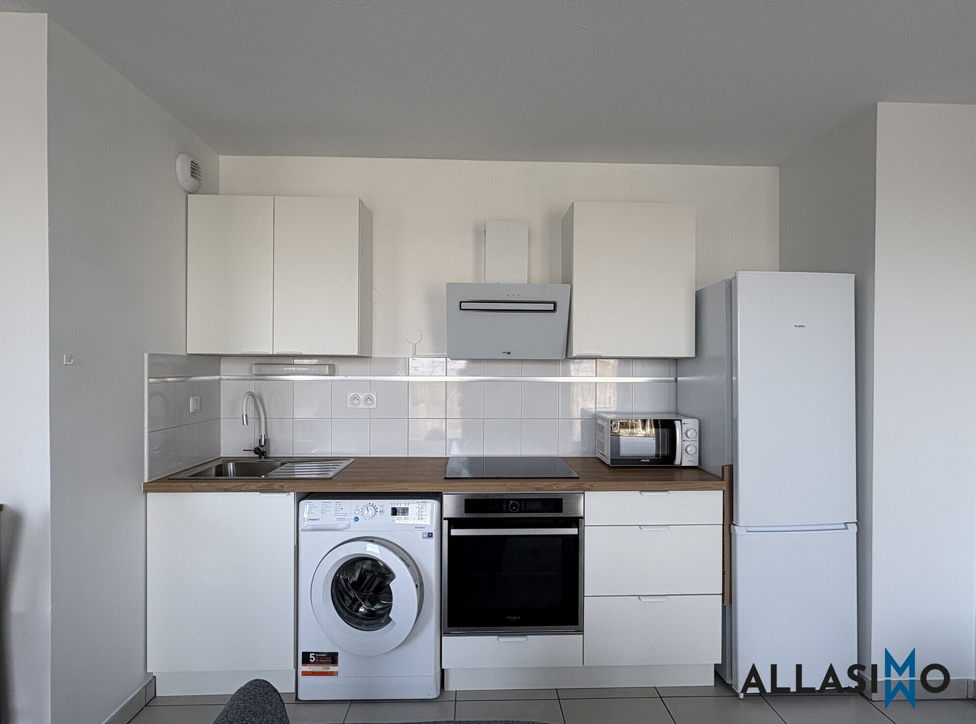 Desservi par ascenseur, cet appartement T2 offre une entrée, un séjour avec cuisine américaine aménagée et équipée (four, plaques, hotte, réfrigérateur-congélateur, micro-onde, lave-linge), une grande chambre et une salle de bains avec WC.